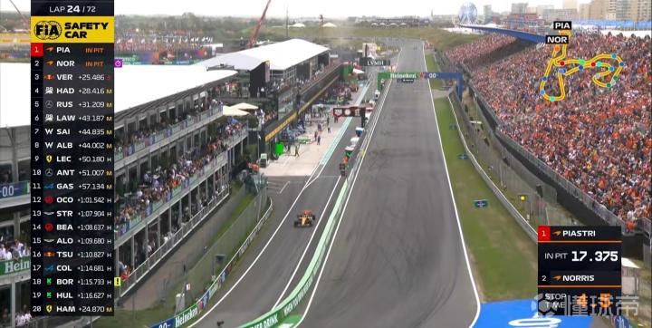 第28圈:爆胎的二位车手进站完成二停,出站后已被皮亚斯特里套圈;