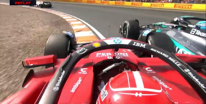 拉塞尔向车队报告勒克莱尔存在四轮出白线超越的情况,赛会对此展开调查;