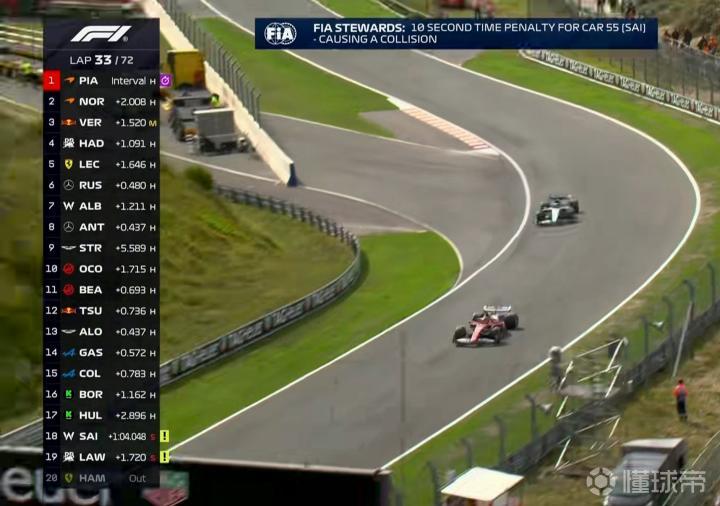 第33圈:塞恩斯因之前的事故被赛会罚时10秒!