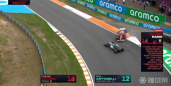 回放显示安东内利在3号弯走内线“鱼雷”勒克莱尔,后者认为安东内利的这次尝试是非常鲁莽且不应该的!