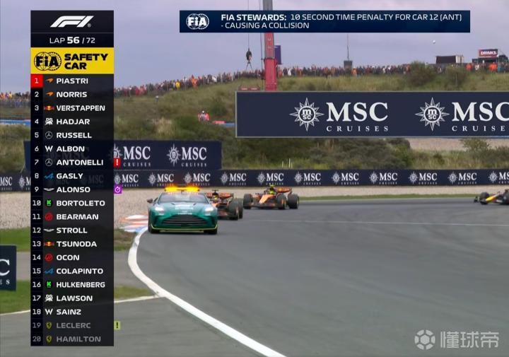 第56圈:安东内利因与勒克莱尔的碰撞被罚时10秒!