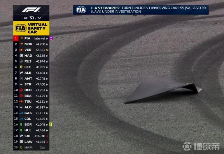 第31圈:虚拟安全车出动,需要马修上赛道清理碎片;