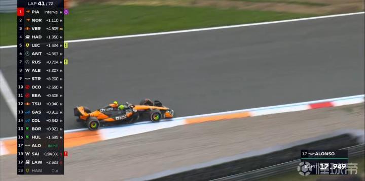 第4圈:维斯塔潘难以匹配皮亚斯特里的长距离节奏,已经被后者甩开2秒;