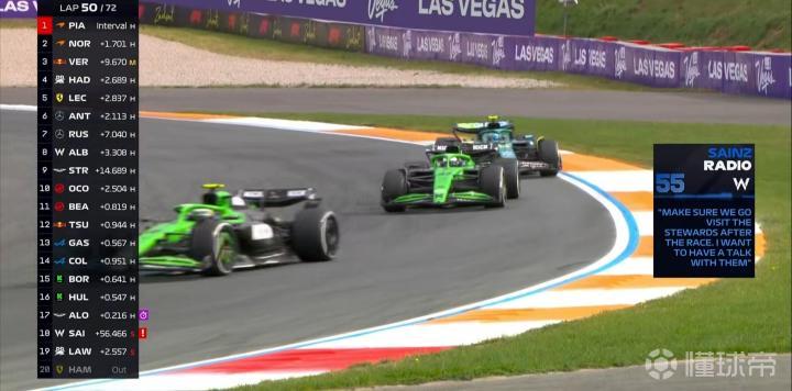 第50圈:塞恩斯表示比赛结束后自己会去和赛会干事聊一聊,阐明自己的观点;
