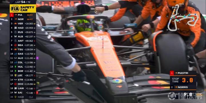 第54圈:安全车出动!多位车手选择进站完成二停;