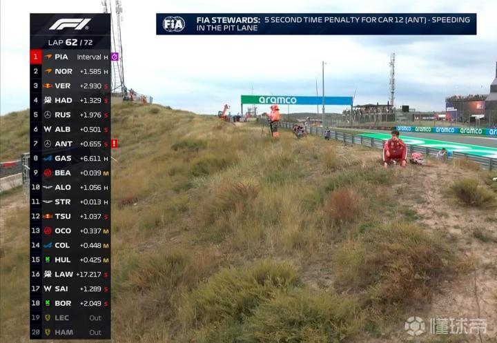 第62圈:安东内利因维修区超速被罚5秒,他目前身背15秒罚时!