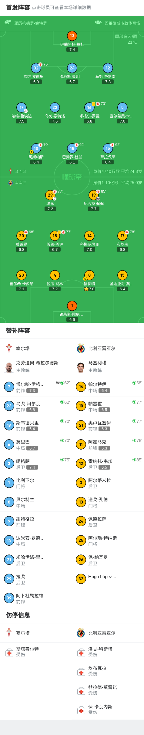 塞尔塔1-1比利亚雷亚尔,伊格莱西亚斯绝平,佩佩破门