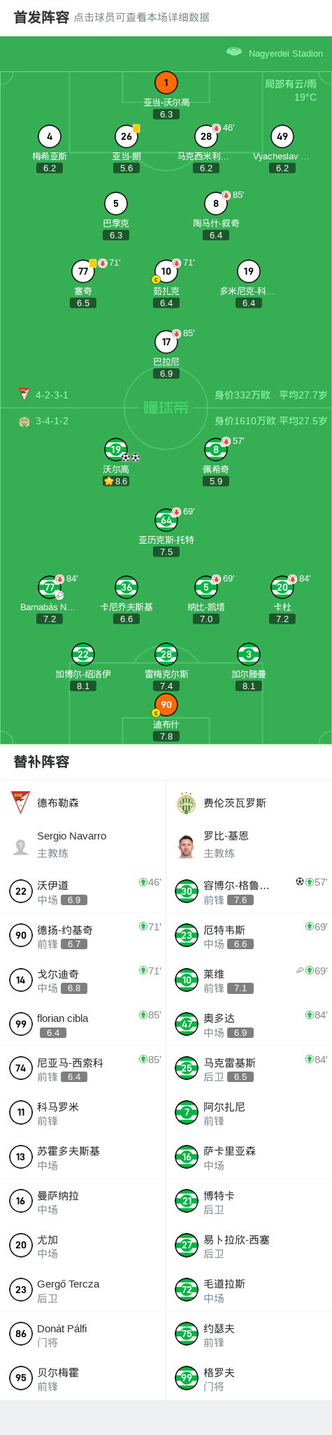 第40分钟,费伦茨瓦罗斯球员Barnabás Nagy助攻沃尔高打入一球。