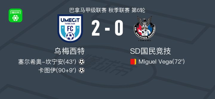 乌梅西特2-0SD国民竞技,塞尔希奥-坎宁安建功,卡图伊锦上添花