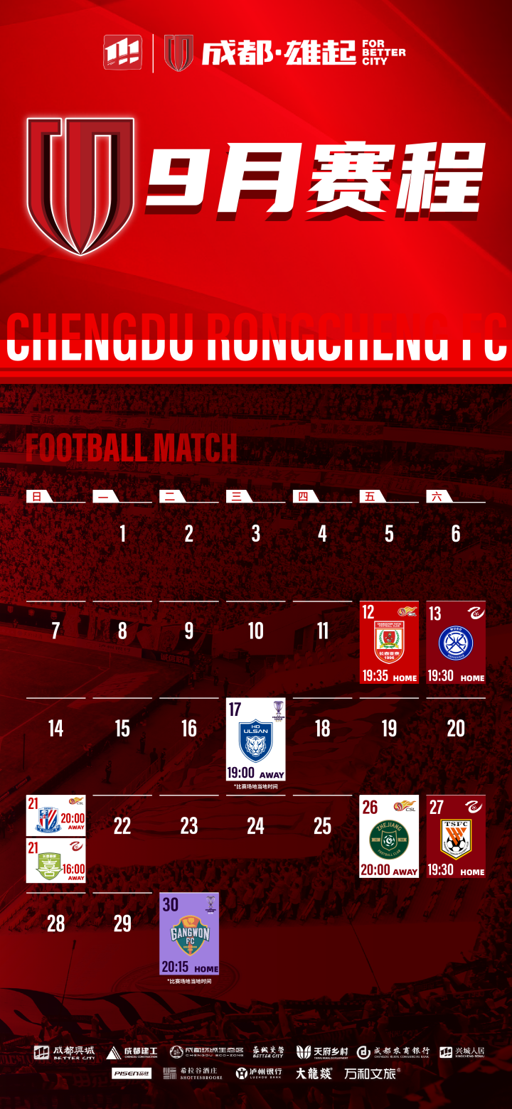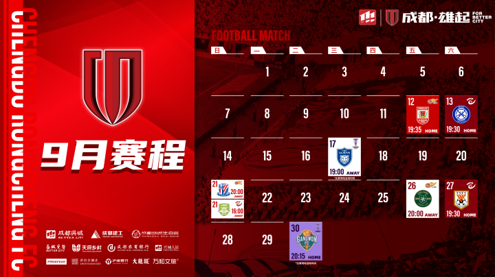 成都蓉城9月赛程壁纸出炉!