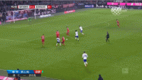 △比赛第73分钟,穆勒横传,中路莱万在防守球员干扰下没有形成射门。当两翼的威胁随着沙尔克的换人而解除,拜仁逐步控制住了比赛的节奏,并在对方半场反复地传递,寻找进攻机会。进过中场的连续的短传之后,穆勒找到了穿插的空间,队友的传球正好从沙尔克两名后卫中间划过,反越位成功的穆勒在门将面前冷静拿球后轻轻横传至门前,可惜包抄的莱万在两名防守球员的干扰之下没有形成打门,错失梅开二度的机会。不过,拜仁到这个时候已经完全掌控了比赛,可以说,经过了七十多分钟的高强度逼抢,此时进行战术调整的沙尔克已经没有了之前的冲击力,虽说不上是被动挨打,但也无法再让拜仁防线感受到上半时紧张感。