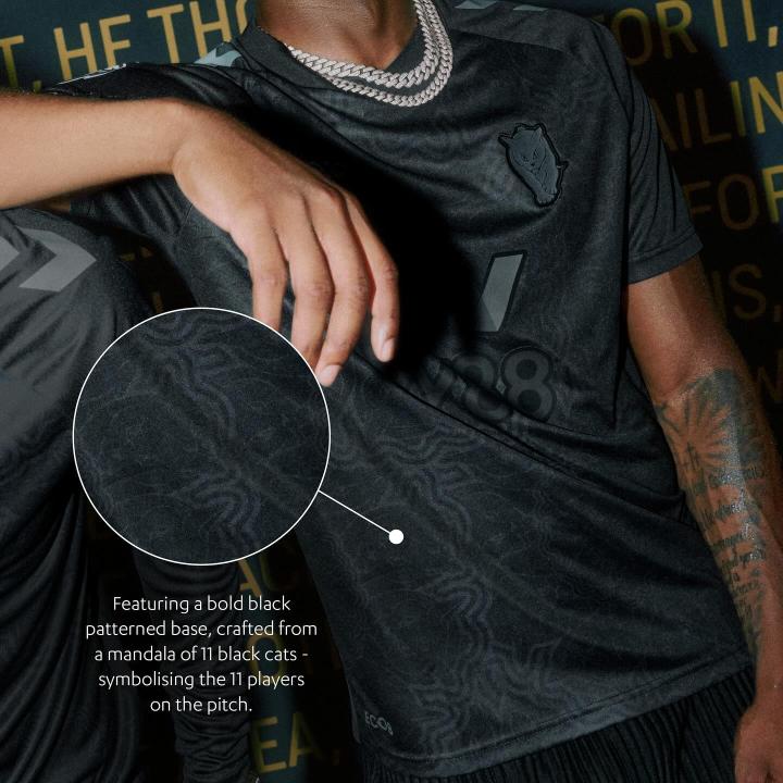 这件全黑战袍不仅致敬了球队历史,讲述了“黑猫”昵称的由来,更是用细节将 “野性与传承” 的故事感拉满。