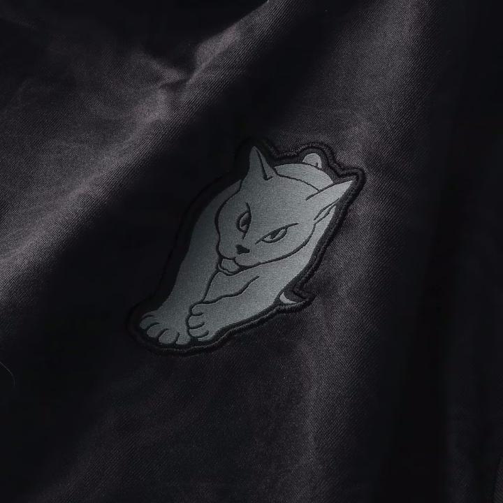 红白狮子队徽被替换为一只姿态凌厉、眼神坚定的黑猫图案,没有多余的装饰,仅用简洁线条凸显 “捕食者” 的威慑感。