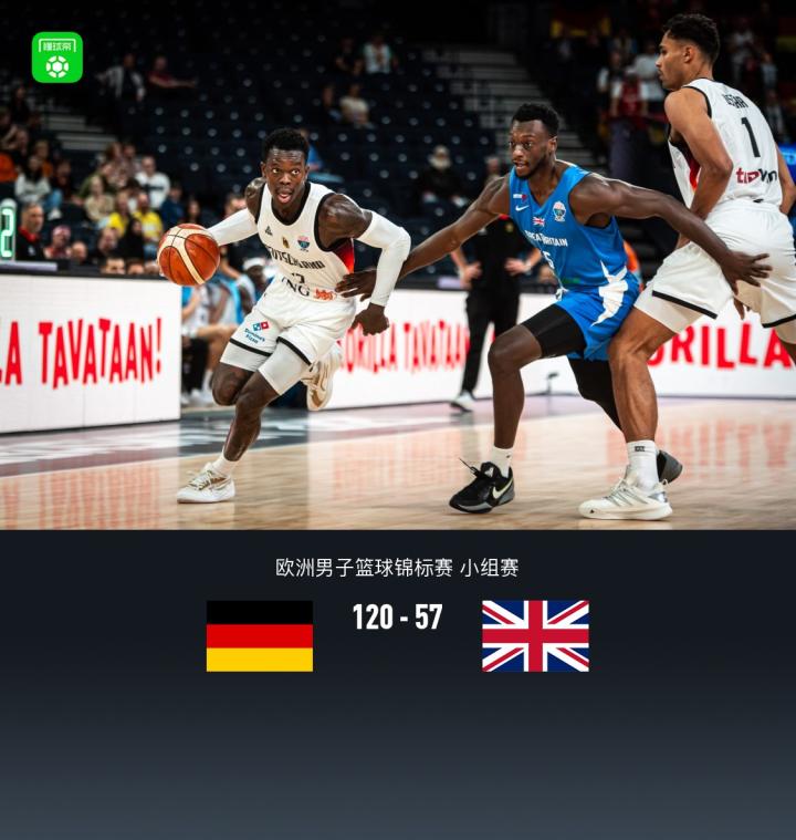 北京时间9月1日欧洲男子篮球锦标赛 小组赛,德国男篮对阵英国男篮。半场德国男篮58-31英国男篮,最终德国男篮120-57英国男篮。