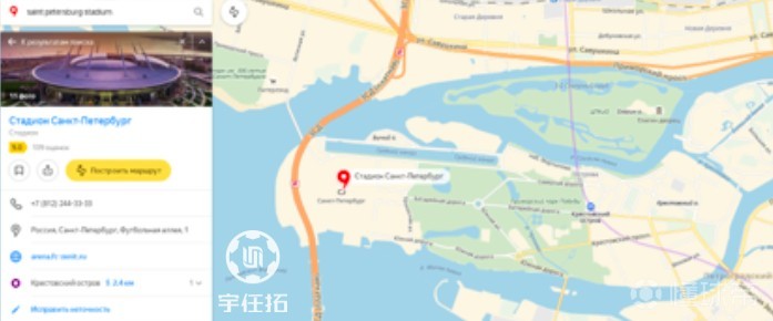 如图所示,圣彼得堡体育场位于芬兰湾畔,涅瓦河入海口处的克里斯托夫岛(Крестовский остров)西侧,为了确保世界杯前,体育场周边道路交通和配套设施顺利完工,周边道路设置了限行禁停,团队大巴无法登岛,只能在紧邻的跨河高速公路路过时远观球场。不甘心,只能脱团私自前往!