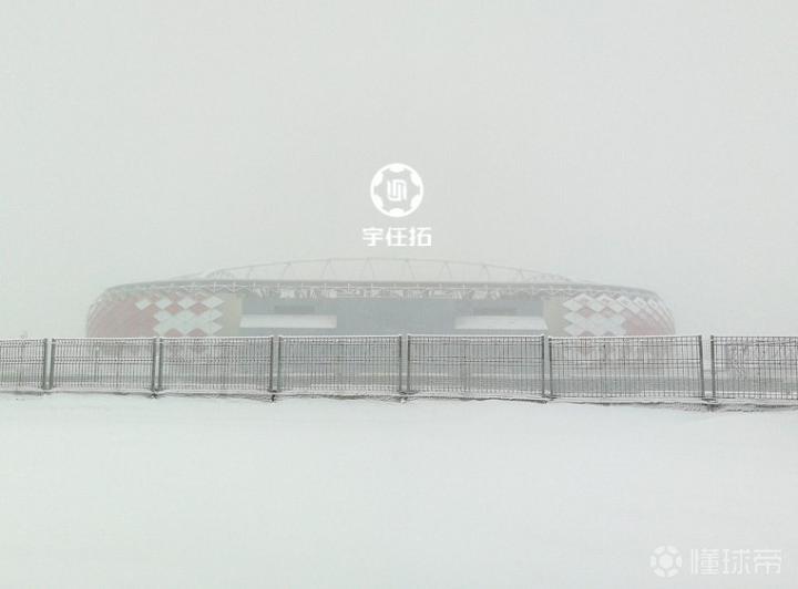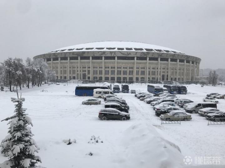 不巧的是,我们前往踩点的当天,恰逢俄罗斯今年最大的一场雪,而且是一个俄超冬歇期的周末,整个体育场都处于封闭状态。在凛冽的寒风和横飞的雪花中,我们趟过齐膝深的雪地,也只能远观这座现代感和艺术感极强的场馆了。