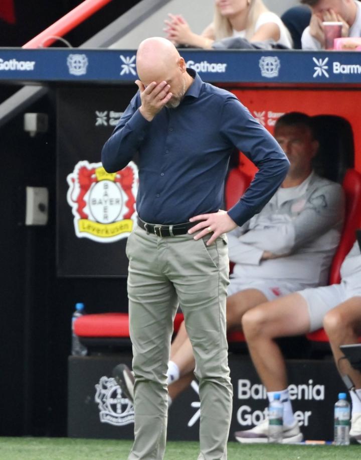 滕哈格上任之初便面临艰巨的重建任务——接替以不败战绩夺得德甲冠军的传奇教练阿隆索,同时应对维尔茨、弗林蓬、约纳坦・塔等核心球员大规模离队的阵容真空。然而,他在战术布局上的固执选择成为了第一道裂痕。根据其战术布局,滕哈格并未延续阿隆索成功的3-4-2-1体系,而是强行推行自己擅长的4-2-3-1阵型,这一决策直接导致了球队战术运转的全面紊乱。