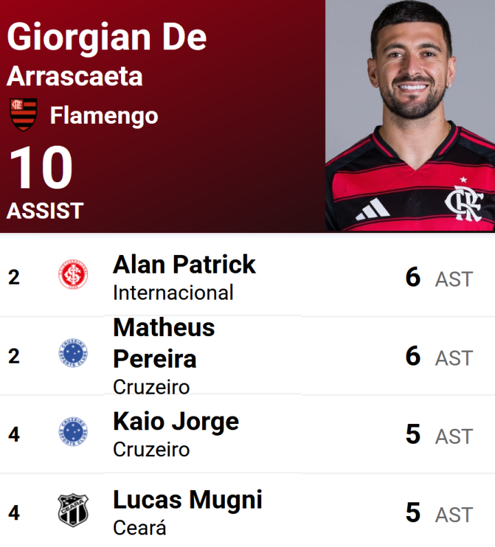 直接参与G/A仅罗克(帕尔梅拉斯)1人,不过他上演帽子戏法,是本轮最耀眼的球员。