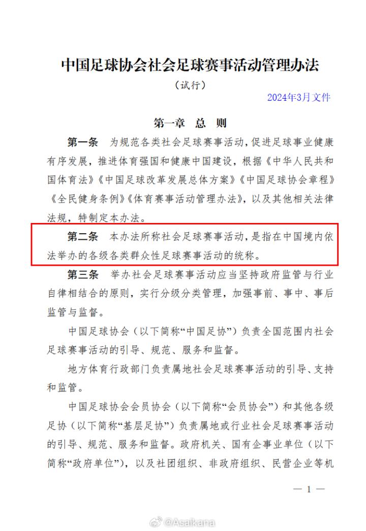 其实在2024年3月22日印发的《中国足球协会社会足球赛事活动管理办法(试行)》中,这句话就已经有了。那个时候别说苏超了,连苏超前身重点城市对抗赛都没诞生。