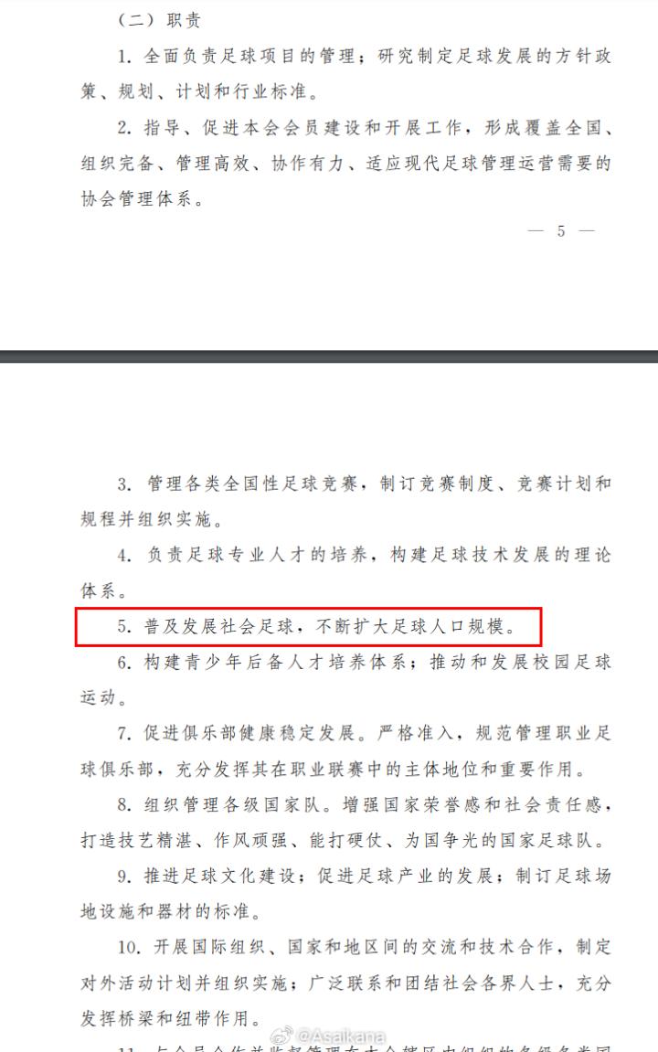 (二十五)推动社会足球与职业足球互促共进。通过社会足球人口不断增加、水平不断提高,为职业足球发展奠定扎实的群众基础和人才基础。通过加快发展职业足球,促进社会足球的普及和提高。”