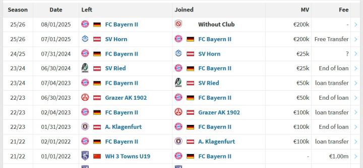 德转:刘邵子洋被拜仁二队签回一个月后,重新变为自由身