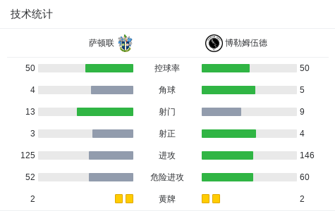 下半场补时第3分钟,博勒姆伍德球员刘易斯-理查森助攻埃里科-索萨打入一球。