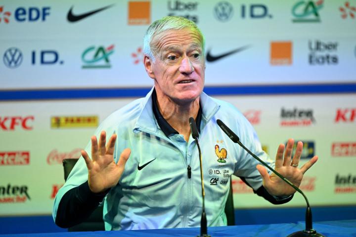 法国对阵乌克兰赛前,主帅德尚出席了新闻发布会。