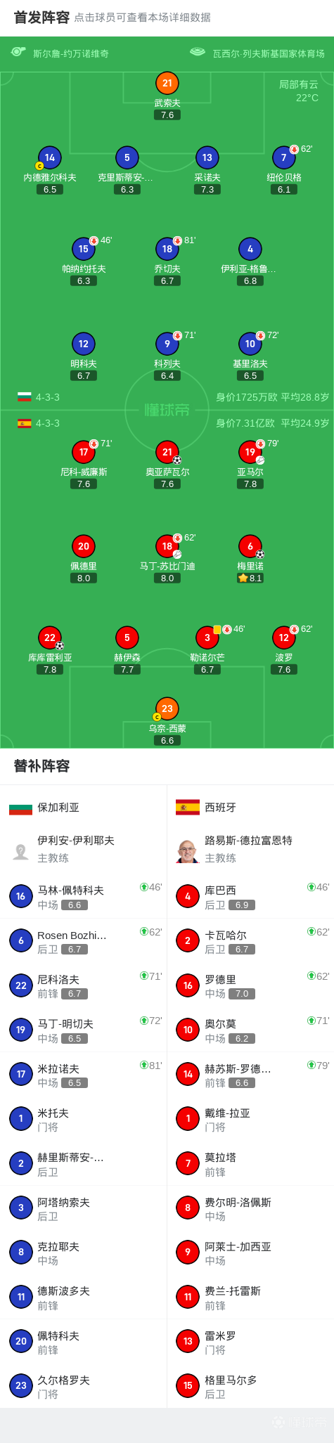 第5分钟,苏比门迪助攻奥亚萨瓦尔闪击,西班牙1-0保加利亚