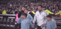 双方球员步入球场,比赛即将打响