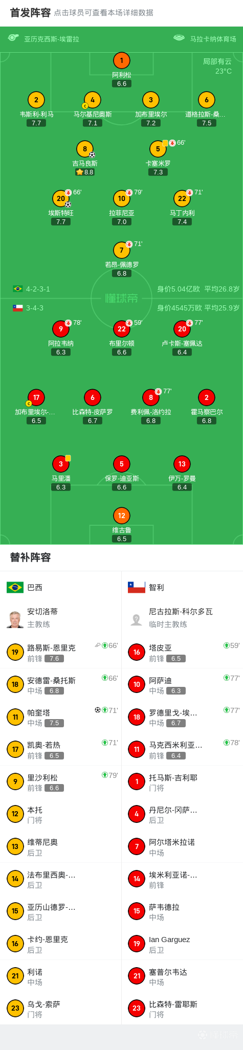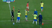第17分钟,巴西边路打出一脚配合后下底传中,被智利后卫解围