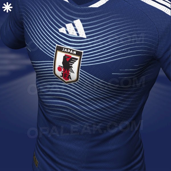近日,知名球衣装备网站Footy Headlines曝光了日本队2026世界杯的主场球衣首款谍照,球衣采用了传统的海洋蓝主色调,配以波浪状银灰线条纹。
