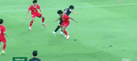 第45+4分钟,韩国队10号门前补射破门,韩国2-0老挝