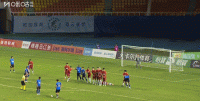 第18分钟,任意球一踩一拨,崔明安直接兜射破门扳平比分,大连鲲城1-1