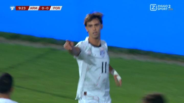 欧洲区世预赛,葡萄牙队客场对阵亚美尼亚队,上半场菲利克斯破门为葡萄牙队取得领先,至此,菲利克斯葡萄牙国家队生涯进球数已上双。