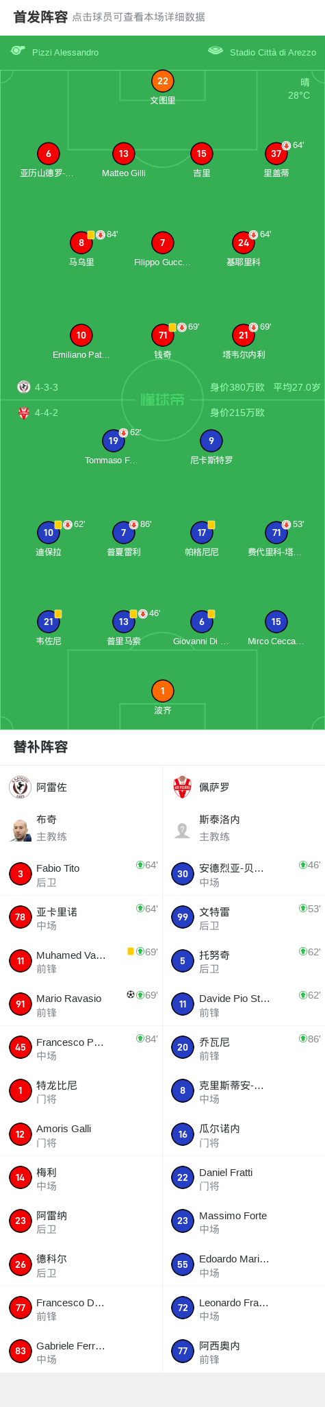 第80分钟,阿雷佐球员Mario Ravasio打入一球。