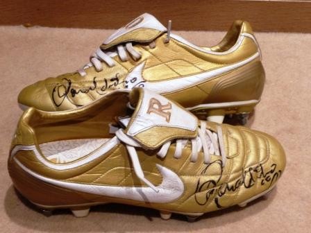 大罗的鞋,一般也没有鞋标,但尺码据说和小贝一样,也是43码jp275,但是由于一直使用nike的老刺客系列,尺码略偏小,据说他的脚大小在uk9左右,也就是刺客的44jp28,差不多就是275.
