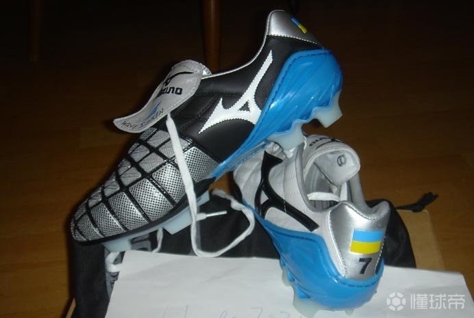 乌克兰核弹头舍瓦的脚,也是黄金尺码,舍瓦基本没有穿过主流的鞋,型号找到一双他2006年世界杯的mizuno战靴,尺码uk8,也就是42jp27.