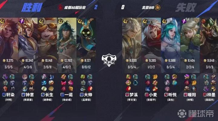 2025KPL夏季赛决赛:AG 4-1 WB豪取六连冠;辅助大帅获FMVP