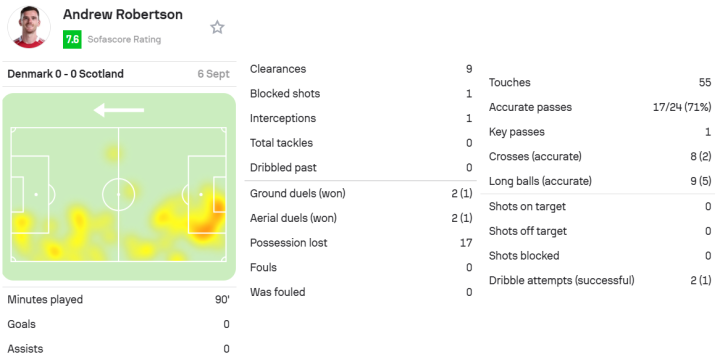 2.罗伯逊,丹麦0-0苏格兰,首发打满全场。