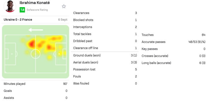 5.科纳特,乌克兰0-2法国,首发打满全场。