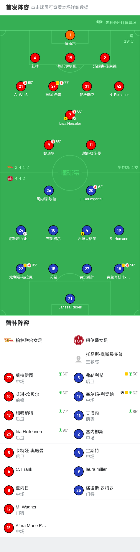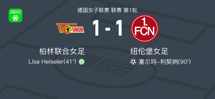 柏林联合女足1-1纽伦堡女足,Lisa Heiseler首开记录,塞尔玛-利契纳扳平比分