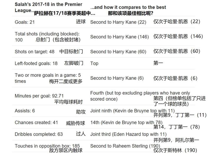 萨拉赫本赛季各项进攻数据以及和该项最佳的对比