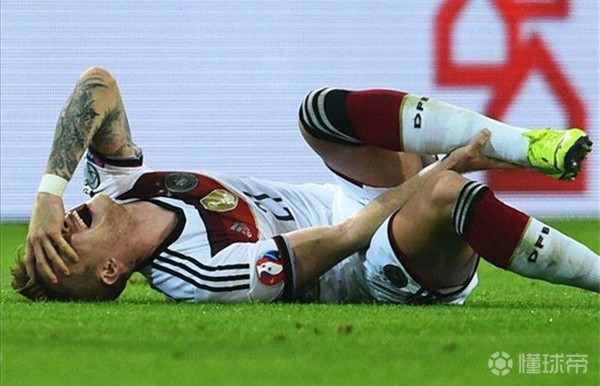 脚踝骨折、韧带撕裂、膝盖挫伤、腿筋拉伤,还有一系列的肌肉问题,这让罗伊斯近年来始终无法远离伤病的困扰。2014年,正是关键时刻的伤停让他失去了跟随德国队举起世界杯的最佳机会。两年后,已经入选德国队大名单的罗伊斯又是在最后时刻因为耻骨炎症而无缘2016年欧洲杯。