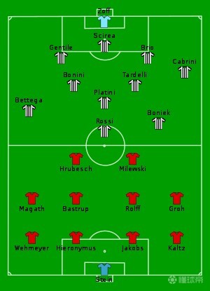 中后卫:4号 西德 迪特马尔·雅各布斯(1989年退役,效力过汉堡、杜伊斯堡、柏林普鲁士网球足球俱乐部、红白奥伯豪森等队,拿到过欧冠冠军,德甲冠军。他的退役原因令人唏嘘。在1989年9月20日汉堡与不来梅的比赛中,他将一记对方的射门在球门线前解围后,自己的后背被固定球门的钩子钩住插入了他的背部。当时这个钩子没按规定藏在地下。经过20分钟的抢救,队医用手术刀将钩子从他身上取了下来,同时也切断了他的神经。这一事故让他不得不离开了球场。但他还是感到很幸运,因为这个钩子只差2英寸就伤及他的脊柱了。)