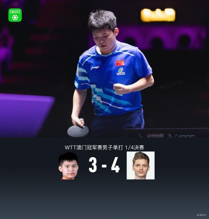 北京时间9月13日,WTT澳门冠军赛,男单1/4决赛,中国运动员林诗栋3-4不敌丹麦运动员安德斯-林德,无缘半决赛。