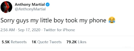 因为在2020年时,马夏尔就曾经在社媒爆出,儿子瞎玩自己手机,发送很多乱码的事情。