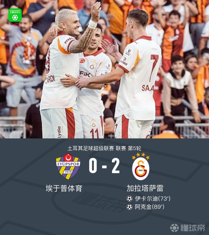 加拉塔萨雷2-0客胜埃于普体育,伊卡尔迪破门,阿克金建功