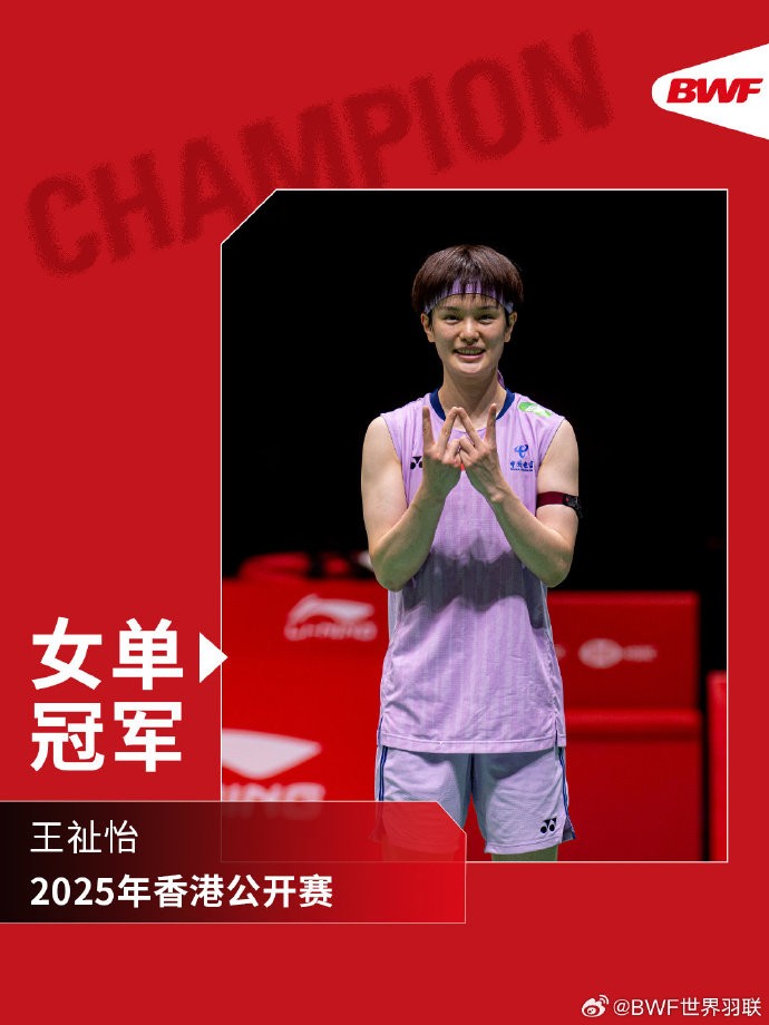 王祉怡2-0击败队友韩悦,首夺香港羽毛球公开赛女单冠军
