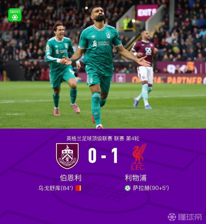 9月14日,英格兰足球顶级联赛第4轮,伯恩利坐镇主场迎战利物浦。上半场,乌戈舒库放铲麦卡利斯特染黄,凯尔凯兹假摔染黄后被换下,埃基蒂克造险;下半场,乌戈舒库因对维尔茨犯规领到第二张黄牌被罚下场。补时第5分钟,弗林蓬制造点球,萨拉赫主罚点球命中完成绝杀。最终利物浦1-0客胜伯恩利,豪取英超四连胜。