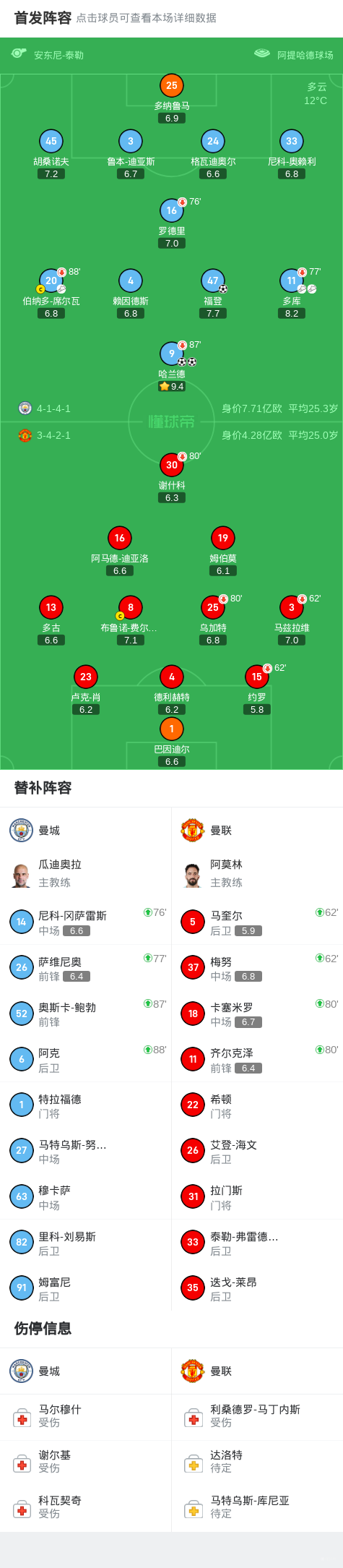 第76分钟,尼科、萨维尼奥替补登场,罗德里、多库被换下